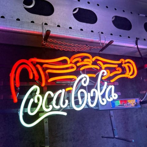 I fremragende stand og en sjælden lysreklame for Corona Øl fra Nederlandene, og lavet i 80’erne til det europæiske marked. Reklamegenstanden fra det verdenskendte mærke har en metalramme med et sej, rustlignende, industriel udtryk, og der står den oplyste tekst "Corona". Desuden er lysreklamen udstyret med en dæmper og en afbryder, og et tre meter langt kabel med stik. Og du kan enten hænge den op eller placere den.
