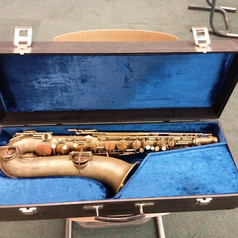Ældre tenor-saxofon, graveret “Alfred Franzen – Liège” på pavillonen (se billeder).