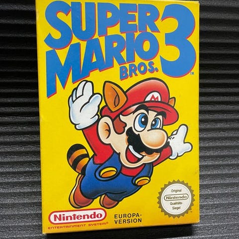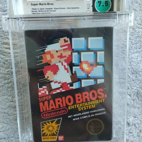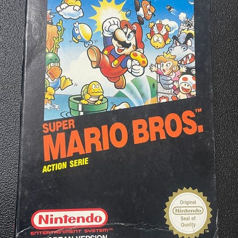 Sælger her det legendariske Super Mario Bros. fra Classic-serien, ekstremt sjældent at finde komplet til Nintendo Entertainment System (NES).