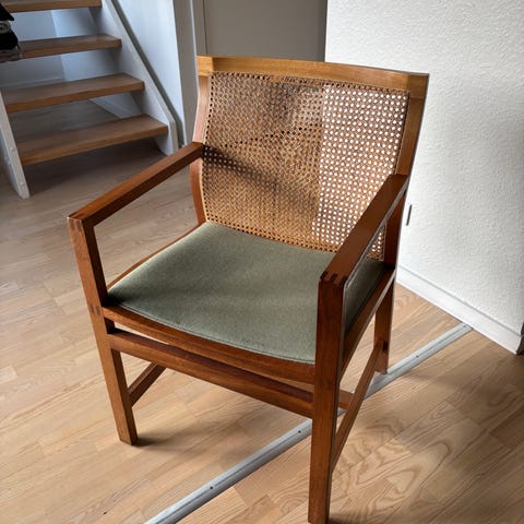 Stand: Brugte af ældre dato. Træet er yderst velholdt med kun meget få små skrammer. To af stolene skal have udskiftet flet i sæde og ryg - og to stole har et par små brud i flet, som man skal kigge godt efter for at få øje på.