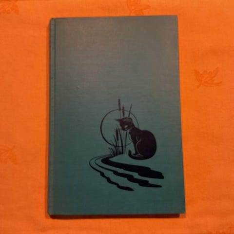 Forlagets blå stofbind med guldbogstaver og dekoration på forflappen, guldbogstav og dekoration på ryggen. Uden nederst. Slidt ved bindet.