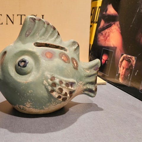 Keramik, Keramikfisk med 3 små fiskeskåle., Retro