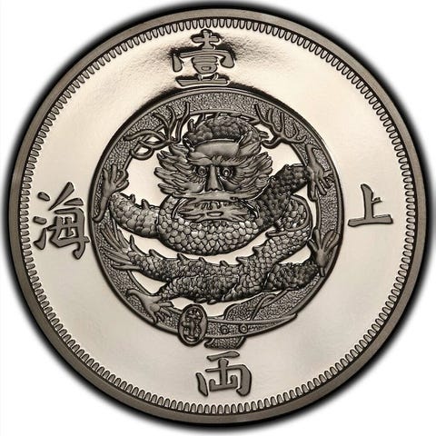 - Indskrifter: Forside: portræt af Sun Yat-sen der ser mod venstre, med indskrift i kinesiske tegn 中華民國 fordelt i den øverste bue og gravørens underskrift L. Giorgi ved siden af bysten. Bagside: laurbærkrone bundet i toppen, med tegnene 國章 placeret lodret i midten.