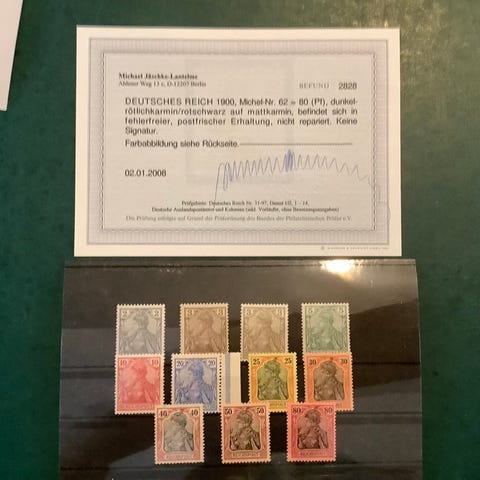 Sjældent sæt og nøgleværdi: 5 Mark mærke signeret Richter og Burger, ofte meget smukt centralt, afstemplinger; 10 Mark-stemplet har en lille hjørnefold og er underskrevet som sådan