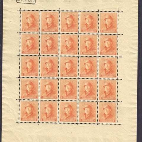 Helt ark af 5c Heraldic Lion med PU5 og PU6 kombinationerne, Belgien, i postfris tilstand. Klik på den blå "gå til varen" knap, for at købe eller byde på denne vare. Den samlede pris vil blive vist inden du afgiver dit bud.