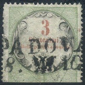 Geografisk oprindelse Lombardiet og Venedig, første udgivelse af 45 centesimi fra 1850'erne: 13 frimærker på fragment med en stribe af 7, afklæbet, Sassone 22b, certifikat Diena. Klik på den blå "gå til varen" knap, for at købe eller byde på denne vare. Den samlede pris vil blive vist inden du afgiver dit bud.