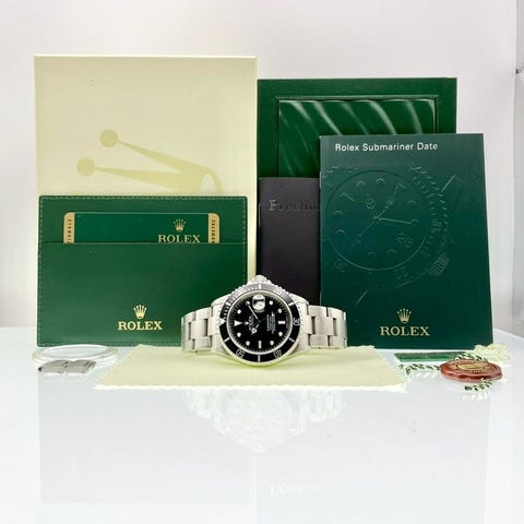 - Rolex Oyster Perpetual SUBMARINER Date 1000Ft / 300Mt Chronometer Certificeret Sort Index Hurtigindstilling af dato og Safirglas