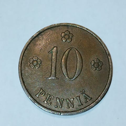 - Indskrifter: Foran: Russisk kejserørn kronet med centralt våbenskjold og møntermærket S under vingen; perlerad omkring kanten. Bagpå: 50 PENNIÄ 1915 inden for en plantekrone bundet med bånd nederst; perlerad omkring kanten.