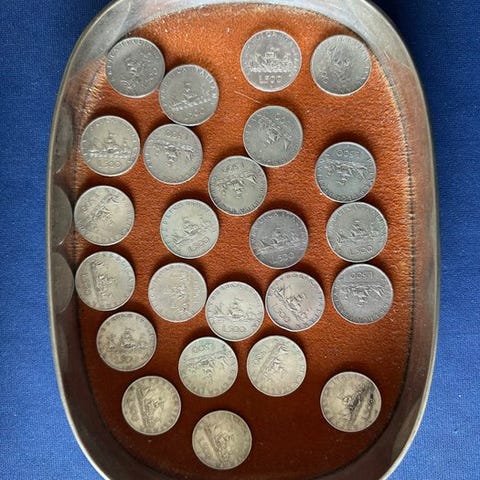 Lod af 16 italienske republikkens sølvmønter, 0,835 sølv, hver 11 g (total over 145 g); indeholder 4x 500 Lire Centenario dell'Unità d'Italia KM#99 (1961) og 12x 500 Lire Caravels KM#98 (1958–1966), varierende stand; de viste mønter er dem, du vil modtage. Klik på den blå "gå til varen" knap, for at købe eller byde på denne vare. Den samlede pris vil blive vist inden du afgiver dit bud.