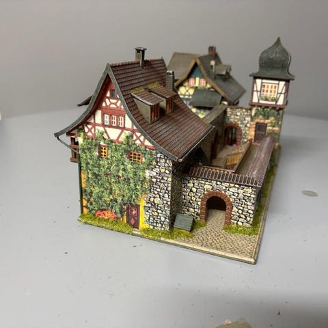 Meget professionelt malet, vejrslidt, patineret og bygget med nyt eller eksisterende byggesæt, af vores tyske kunstner