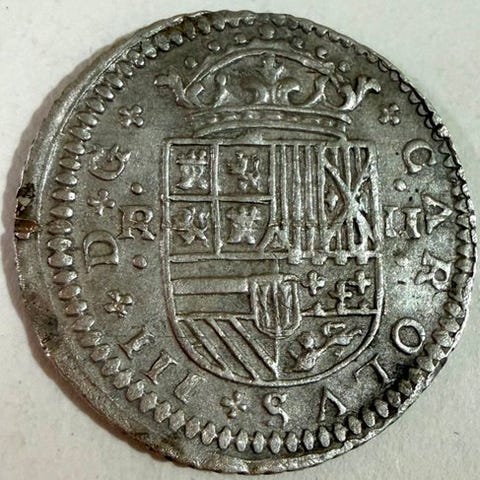 En sølv 1 croat mønt fra 1687, Barcelona, under Karl II, vægt 2,52 g, i ekstraordinær, ikke-certificeret bevarelse. Klik på den blå "gå til varen" knap, for at købe eller byde på denne vare. Den samlede pris vil blive vist inden du afgiver dit bud.