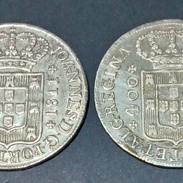 To sølv Cruzados fra D. João, Prins Regenten (1805 og 1809), Portugal, ældre end 200 år, uden bedømmelse. Klik på den blå "gå til varen" knap, for at købe eller byde på denne vare. Den samlede pris vil blive vist inden du afgiver dit bud.
