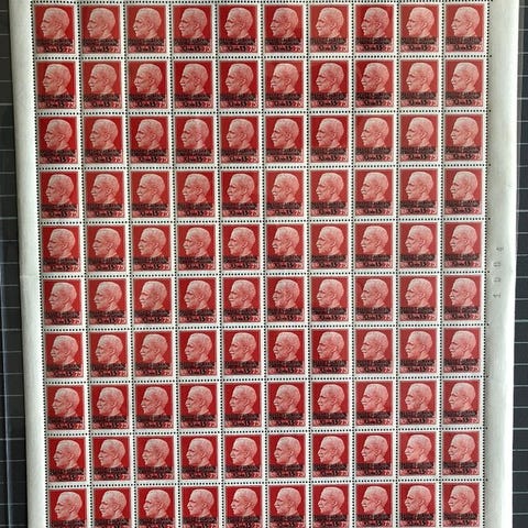 Katalogværdi for blok med pladefejl €3.500 og for almindeligt første-dags-stempel €4.500, så værdien bør være omkring €5.000/6.000 for pladefejlen med første-dags-stempel