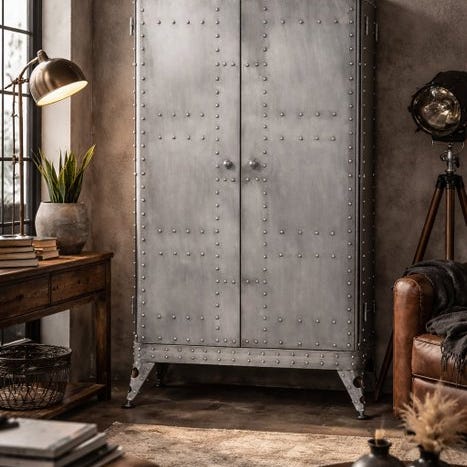 Et iøjnefaldende stykke funktionelt design, dette vintage medicinske skab fra 1970'erne har en klassisk industriel form med en stålramme og originale glas-paneler. Målene er cirka H 180 cm x B 100 cm x D 47 cm, skabet byder på generous display- og opbevaringspotentiale — ideelt for samlere, designere eller enhver, der tiltrækkes af funktionelle vintagemøbler.