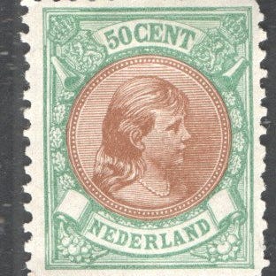 Oprindelse Nederlandene; NVPH 48C, Koningin Wilhelmina type 'hangend haar', 1893–1896, ubrugt, ingen attest. Klik på den blå "gå til varen" knap, for at købe eller byde på denne vare. Den samlede pris vil blive vist inden du afgiver dit bud.