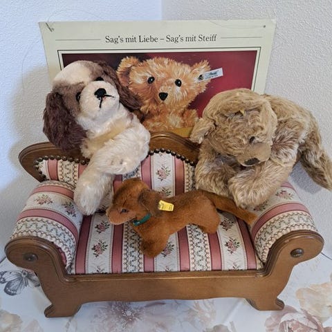 Steiff Hoppy forårsæs, 19 cm høj, lavet af mohair, hovedet kan dreje, begrænset til 1000 stk (nr. 305), med original boks og certifikat, oprindelse Tyskland, ny tilstand. Klik på den blå "gå til varen" knap, for at købe eller byde på denne vare. Den samlede pris vil blive vist inden du afgiver dit bud.