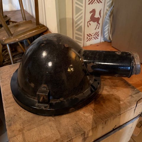 Maskinlampe MEMLITE. Lampen er fuldstændig original og gennemgået. Patinen er ganske enkelt fantastisk. Billederne er en del af beskrivelsen. Klar til at blive fastgjort på væggen.