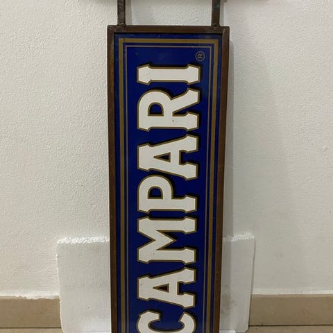 Dobbelt-sidet jernskilt i jernramme af Marchesini Rovigo, model 1975, i Art Déco-stil med indvendigt pladepanel trykt på stålplade med teksten 'Taverna'; mål 80 cm bred, 30 cm høj, 4 cm dyb, vægt 8 kg, fremstillet i Italien (Piemonte), reproduktion, brugt med mindre aldersmærker og pletter. Klik på den blå "gå til varen" knap, for at købe eller byde på denne vare. Den samlede pris vil blive vist inden du afgiver dit bud.