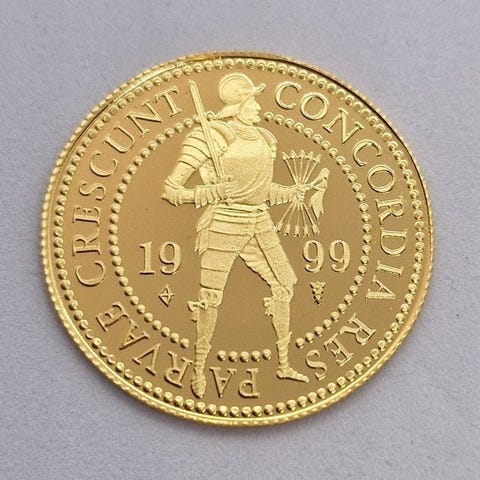 Gulddukat fra Brandenburg-Ansbach, omkring 1753 til Karl Wilhelm Friedrich (1729–1757), præget af Johann Samuel Götzinger; ekstremt sjældent, vægt 3,46 g, ikke certificeret. Klik på den blå "gå til varen" knap, for at købe eller byde på denne vare. Den samlede pris vil blive vist inden du afgiver dit bud.