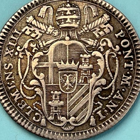Sølvscudo fra Pavestatene, 1854 IX, præget i Rom under Pius IX, ikke vurderet. Klik på den blå "gå til varen" knap, for at købe eller byde på denne vare. Den samlede pris vil blive vist inden du afgiver dit bud.