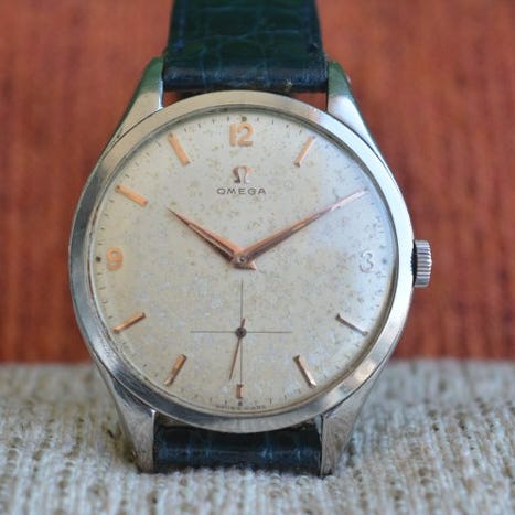 Meget sjælden Vintage Omega Tresor i jumbo-størrelse med smuk sort forgyldt skive og nyserviceret fremragende Omega cal.268 håndoptrukket bevægelse.