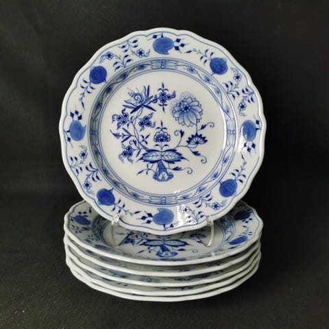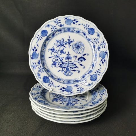 Velkommen! Vi præsenterer seks Meissen middags-tallerkener med et rig indisk grønmalet motiv.