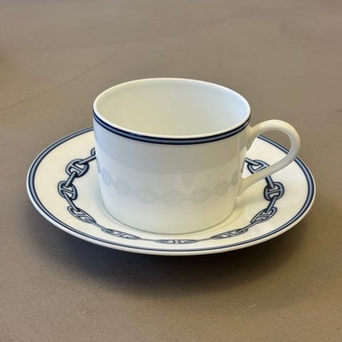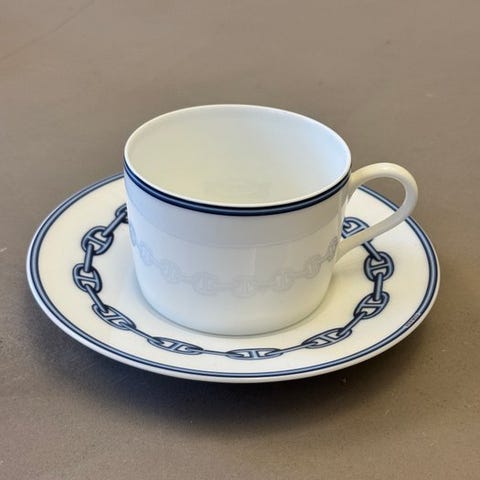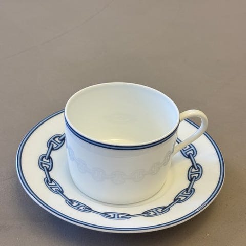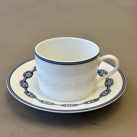 Hermès - Kop og underkop - Chaine d'ancre - bleu - Porcelæn
