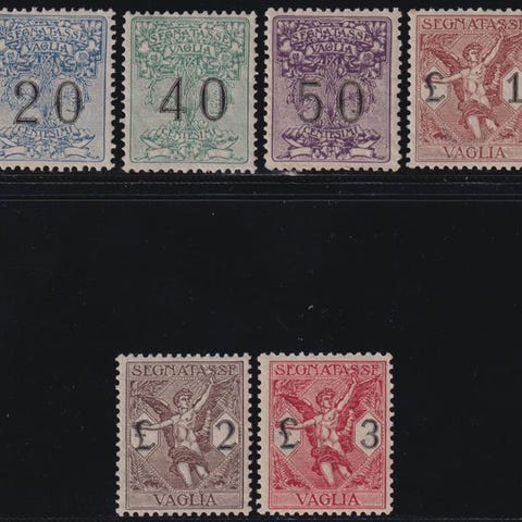 Segnatasse sovr., kompletserie nr. 1/7, frisk og vel perforeret, mint uden gummi, certificeret G. Avanzo, oprindelse Italien – Venezia Giulia. Klik på den blå "gå til varen" knap, for at købe eller byde på denne vare. Den samlede pris vil blive vist inden du afgiver dit bud.