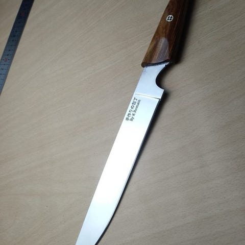 Denne enestående Gyuto-kniv er en forfinet udtryk for tværkulturel kunsthåndværk, omhyggeligt skabt af den franske kunstner K Romain i tæt samarbejde med mestre japanske håndværkere. Designet til at udtrykke præcision, balance og flydende ydeevne, afspejler bladet filosofien om harmoni mellem form og funktion. Enhver kurve er gennemtænkt, hver linje komponeret med kunstnerisk disciplin, hvilket resulterer i et værktøj, der føles både kraftfuldt og yndefuldt i hånden. Inspireret af traditionelt japansk kulinarisk arv, men styret af europæisk æstetisk følsomhed, byder denne Gyuto på bemærkelsesværdet kontrol og alsidighed i køkkenet. Dens profil muliggør ubesværet skæring, rene skærebevægelser fremad, og selvsikre rok-bevægelser, hvilket gør den lige så velegnet til delikat tilberedning som til krævende professionelle opgaver. Samarbejdet