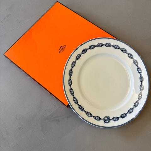 Hermès - Middagstallerken - Chaine d'ancre - bleu - Porcelæn