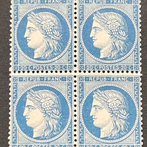Frankrig, 1872, Classique de France 30c brun Cérès med linjet baggrund, blok på 4 ny uden gumme, Yvert Tellier 56c. Klik på den blå "gå til varen" knap, for at købe eller byde på denne vare. Den samlede pris vil blive vist inden du afgiver dit bud.