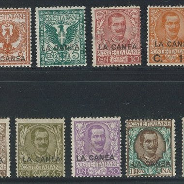Oprindelse Levante, Salonicco, komplet serie på 8 frimærker fra 1909, ubrugt uden gum. Klik på den blå "gå til varen" knap, for at købe eller byde på denne vare. Den samlede pris vil blive vist inden du afgiver dit bud.