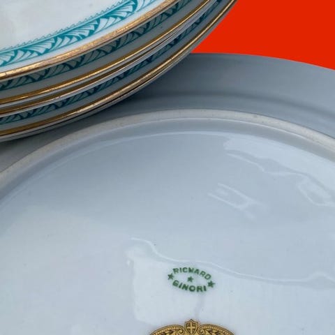 Et sæt af et fiske-servicet i porcelæn fra manufakturen Richard Ginori, dateret til anden halvdel af 1900-tallet.