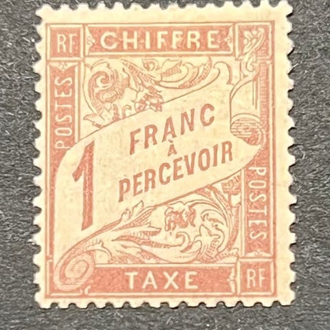 Frankrig 1893/1935 - Fransk Taxe 1f Rosa på strå, ny, Brun på siden 980€ - Yvert Tellier 39