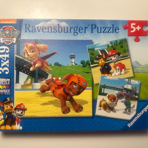 Ravensburger Paw Patrol puslespil til børn. Sættet indeholder flere puslespil med motiver fra Paw Patrol-universet, blandt andet figurer som Ryder og hundene fra serien. Puslespillene har farverige illustrationer og er egnet til børn, der kan lide tegnefilmsmotiver og puslespil. Antal brikker og præcise mål fremgår af æsken.