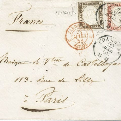 Oprindelse: Antikke italienske stater - Toscana; Titel: 18 Apr 9 cr. con Filetto a sx Sass 8 VAR appena sfiorato su lettera da Livorno Via Genova e Torino; Tilstand: med adresse og anvendt til post, fra 1858, certifikat inkluderet. Klik på den blå "gå til varen" knap, for at købe eller byde på denne vare. Den samlede pris vil blive vist inden du afgiver dit bud.
