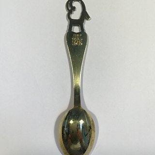 Anton Michelsen Juleske 1982 Forgyldt Sterling Sølv med emalje. Kamma Svensson har altid elsket og kredset om orientalsk kunst og østerlandske eventyr, årets motiv, Dronningen af Saba, er ikke nogen undtagelse. Skaftet afsluttes med krone og hårlokker, ansigtet derunder har store mandelformede øjne og halsen prydes af et stort smykke. Denne vare kan afhentes i følgende butik: Store Kongensgade 76