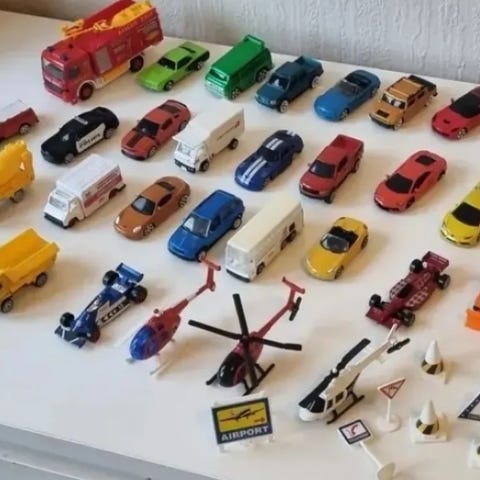 Legetøjsbiler og fly samling metal og plast flere farver