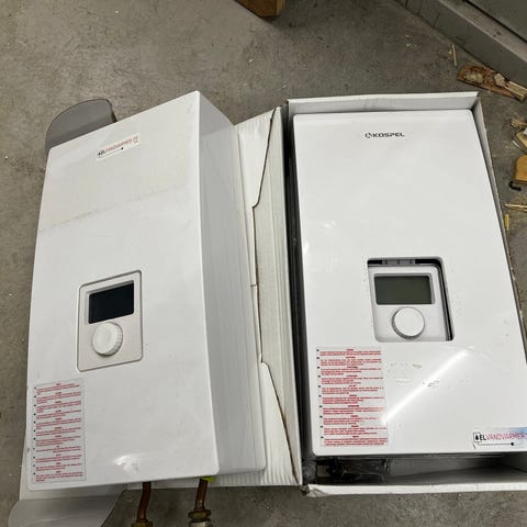Kospel Unit består bl.a. af en pladeveksler (med særligt lavt modtryk) og en el-gennemstrømsvandvarmer, der opvarmer dit brugsvand, med supplement fra en varmepumpe. Løsningen fylder “intet” og løber aldrig tør for varmt vand.