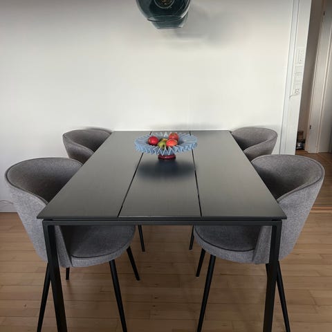 Solid creamefarvet havebord/spisebord i letbeton med flotte ben i bøg,L168, B 68, H 74,5 (Kan også bruges indendørs), fejlkøbt (for stort) nyt for 2 siden for 4500kr