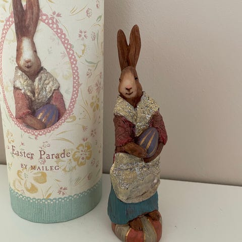 Maileg fine Påske æg i metal og dåse. Med motiv af påskehare. Lyserød lysegrøn. Pæn stand. Pris