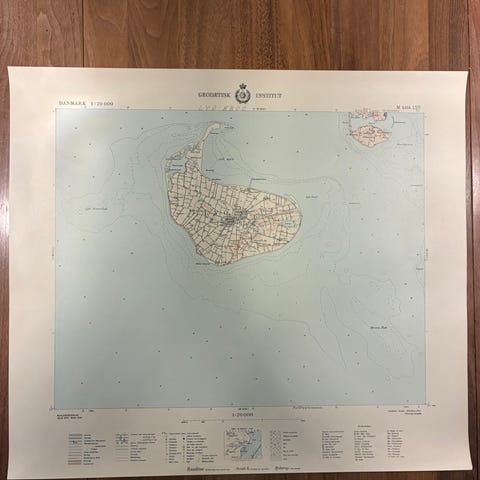 Kortet indeholder bl.a. Rågø, Kalø, Fejø, Ravnsholt, Urne mv.