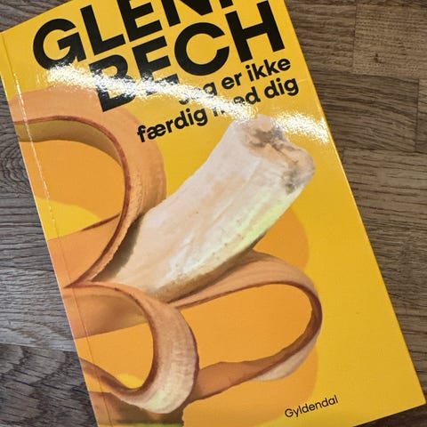 Glenn Bech "Jeg er ikke færdig med dig" bog. Dansk skønlitterær udgivelse i paperback/softcover med gul forside. Tekst på dansk.