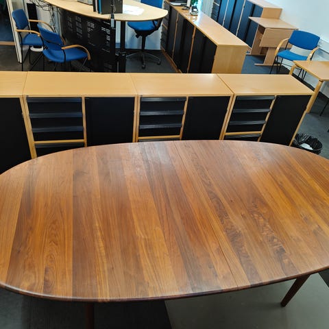Sælger Bruun Munch spisebord billigt grundet flytning. Jeg har haft bordet i mange år og har været utrolig glad for det og passet godt på det. Der kan købes tillægsplader, hvis man ønsker et større spisebord. Skal afhentes i Bronshoj på 1. sal.