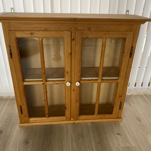 To stk retro vitrineskabe. Sart lyseblå indeni. Er ældre, men fungere så fint og har en masse charme. Prisen er for begge skabe. Kan evt leveres til Odder el Mårslet. Sælges kun samlet