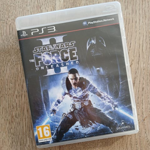 Star Wars The Force Unleashed videospil til Xbox 360. Actionspil i Star Wars-universet, hvor spilleren styrer en lærling med adgang til Kraften. Spillet er på disk i standard Xbox 360-cover og er klassificeret til aldersgruppen 16+ ifølge PEGI-mærkning. Velegnet til Xbox 360-konsoller, der understøtter fysiske spilmedier.