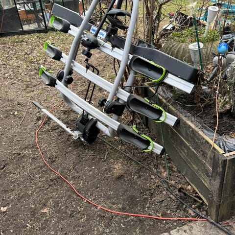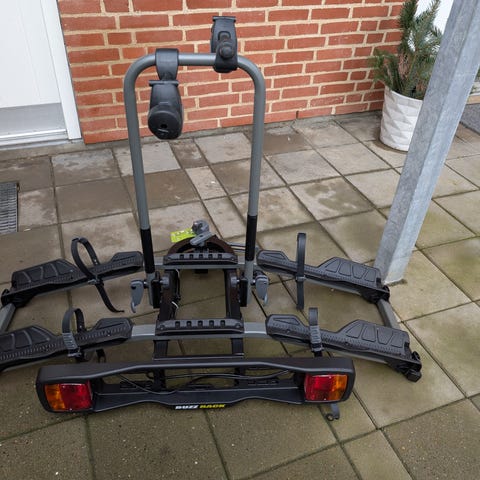 Cykelholder til anhængertræk til transport af op til 3 cykler. Modellen monteres på bilens anhængertræk og har integrerede skinner til cyklerne samt holdere til stellet. Der er baglygter og plads til nummerplade på den nederste del af holderen. Egnet til transport af cykler på bil, f.eks. til ture eller ferie.