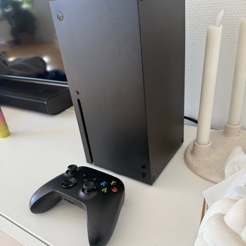 Microsoft Xbox Series X konsol i sort. Stationær spillekonsol i Xbox Series-familien med lodret kabinetdesign. Understøtter moderne Xbox-spil og digitale tjenester via Xbox-platformen.