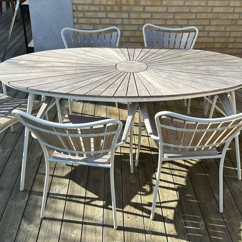 Bord 110 cm diameter. Bord og stole er i rigtig god stand