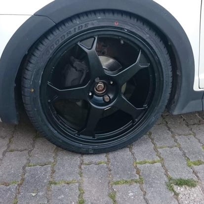 Selling as I got other set , volk racing gts 2 piece wheels 5x114,3 18” , pictures taken right after removing from the car so a bit dirty , one of the wheels has a bit of a scuff but can be fixed easily and polished ( I can get it fixed but will charge more ) tyres are old should be replaced , can be used but I would suggest changing (front 245/40r18 rear 285/35/r18)